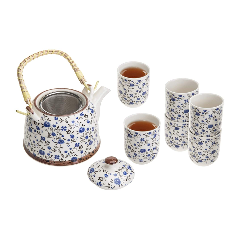 Beautiful blue rose floral design makes this tea set a decorative accent that will bring tradition and elegance to any table.
